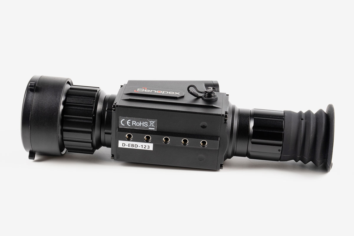 Тепловізійний приціл Senopex DOT A5 виготовляється у формфакторі компактного монокуляра з об'єктивом 50mm F1.0, наближення у чотири з половиною рази й дальністю виявлення об'єктів ~2400m. Має VOx ядро, розроблене за 12µm технологією з роздільною здатністю матриці 384*288px і температурною чутливістю ≤35mK.