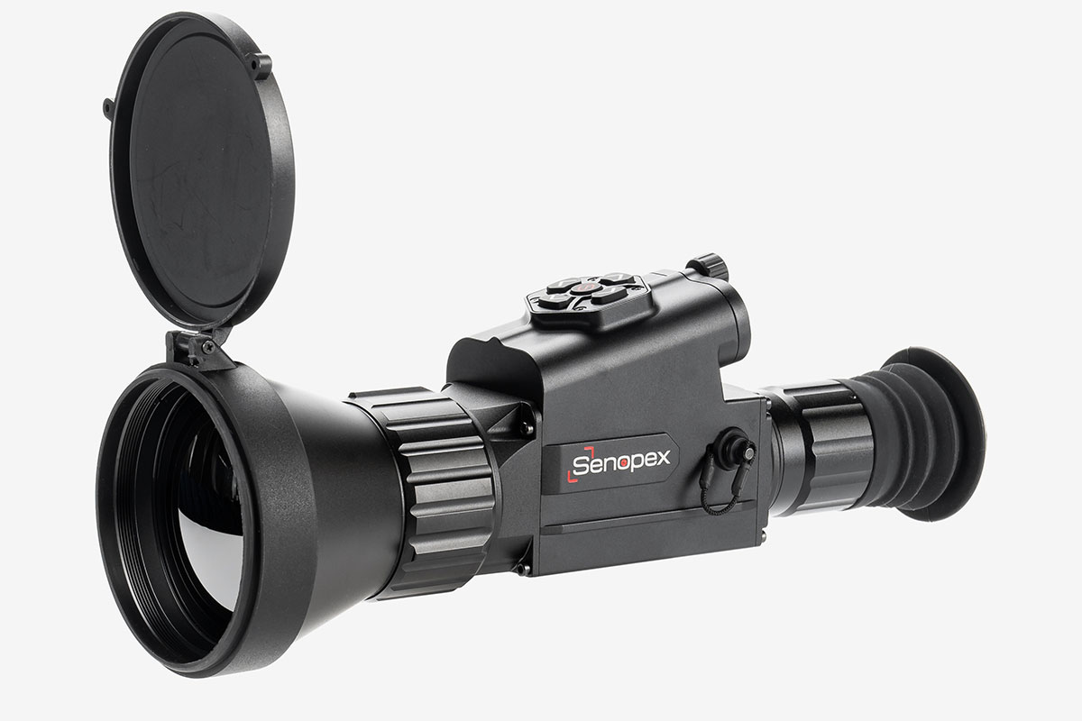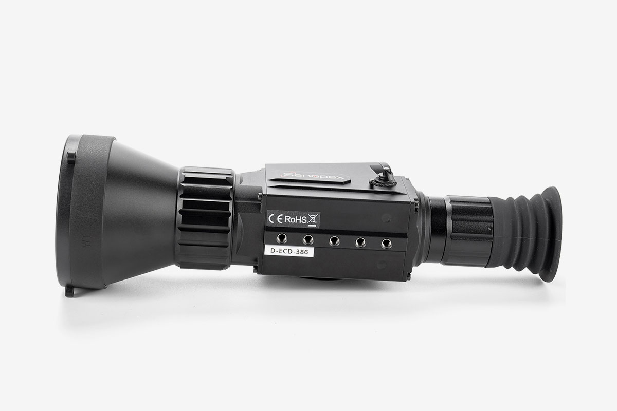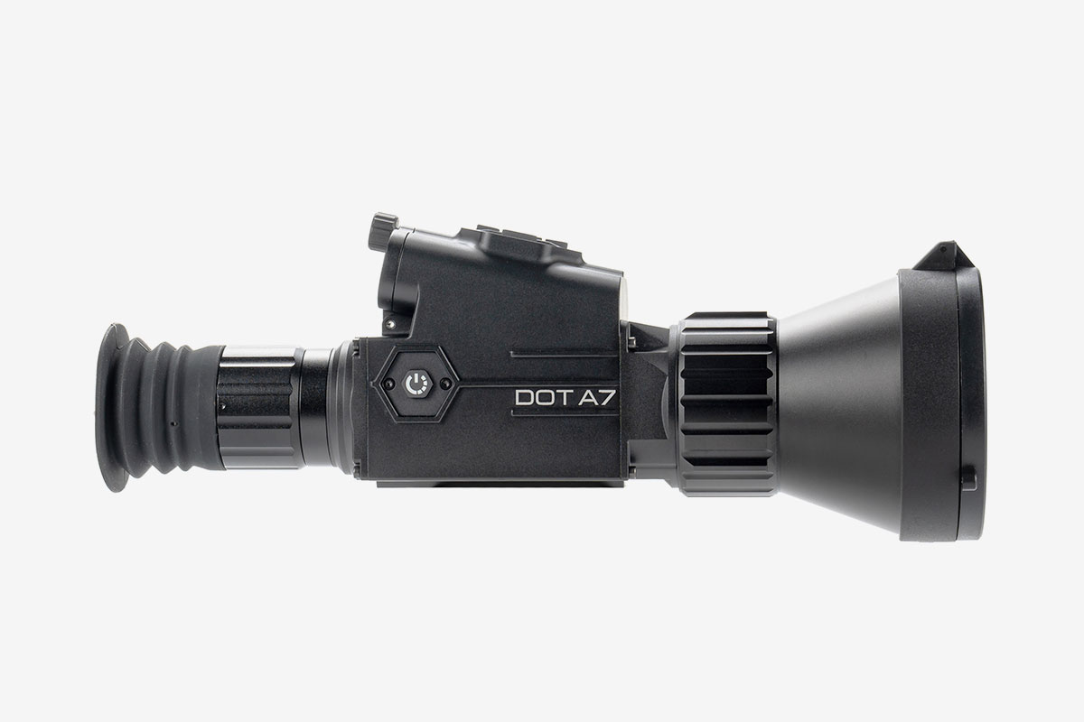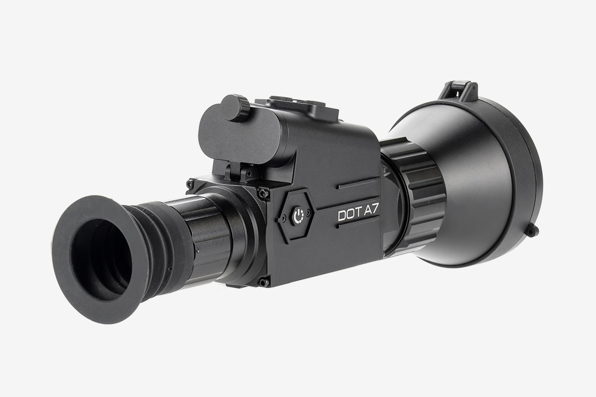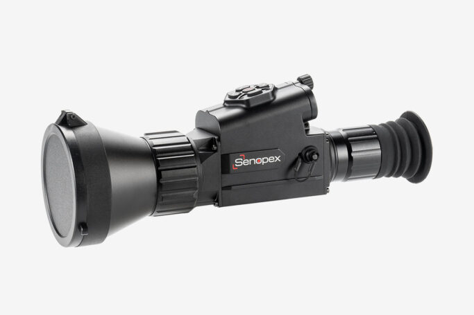 Тепловізійний приціл Senopex DOT A7 виготовляється у формфакторі компактного монокуляра з об'єктивом 75mm F1.0, семикратним наближенням і дальністю виявлення об'єктів ~3600m. Має VOx ядро, розроблене за 12µm технологією з роздільною здатністю матриці 384*288px і температурною чутливістю ≤35mK.